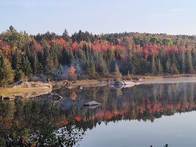 Beautiful fall colors are out, reflected on the streams, lakes, and ponds. A lot of leaves have fallen on the ground, covering the trail, making it hard to follow and obscuring obstacles.